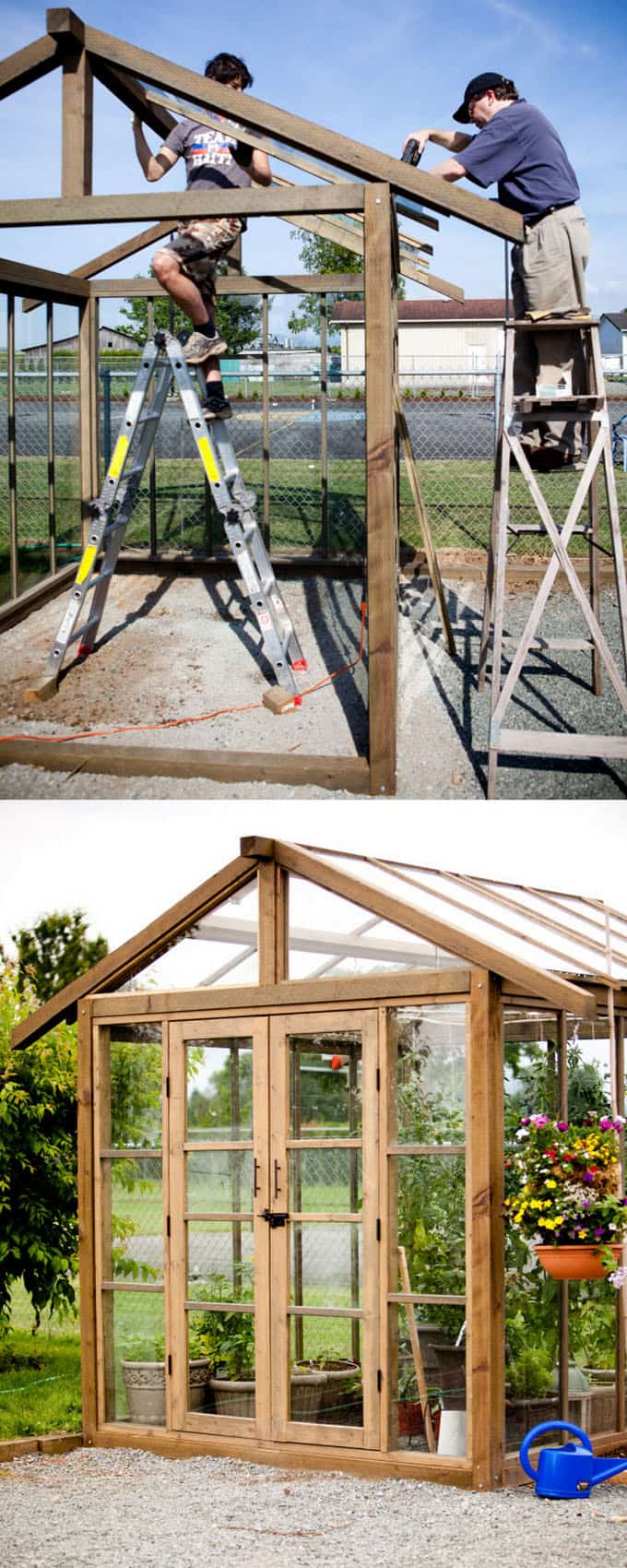 Both are 100% DIY. Tour the drool worthy reclaimed windows greenhouse shed here, and check out the detailed tutorial of the second greenhouse shed here.