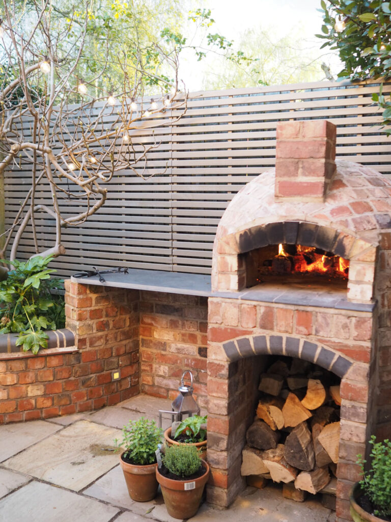 This beautiful DIY brick pizza oven by Claire at The Green Eyed Girl is made from a kit that comes with a dome with an opening, a chimney, insulation, reinforcement, etc.