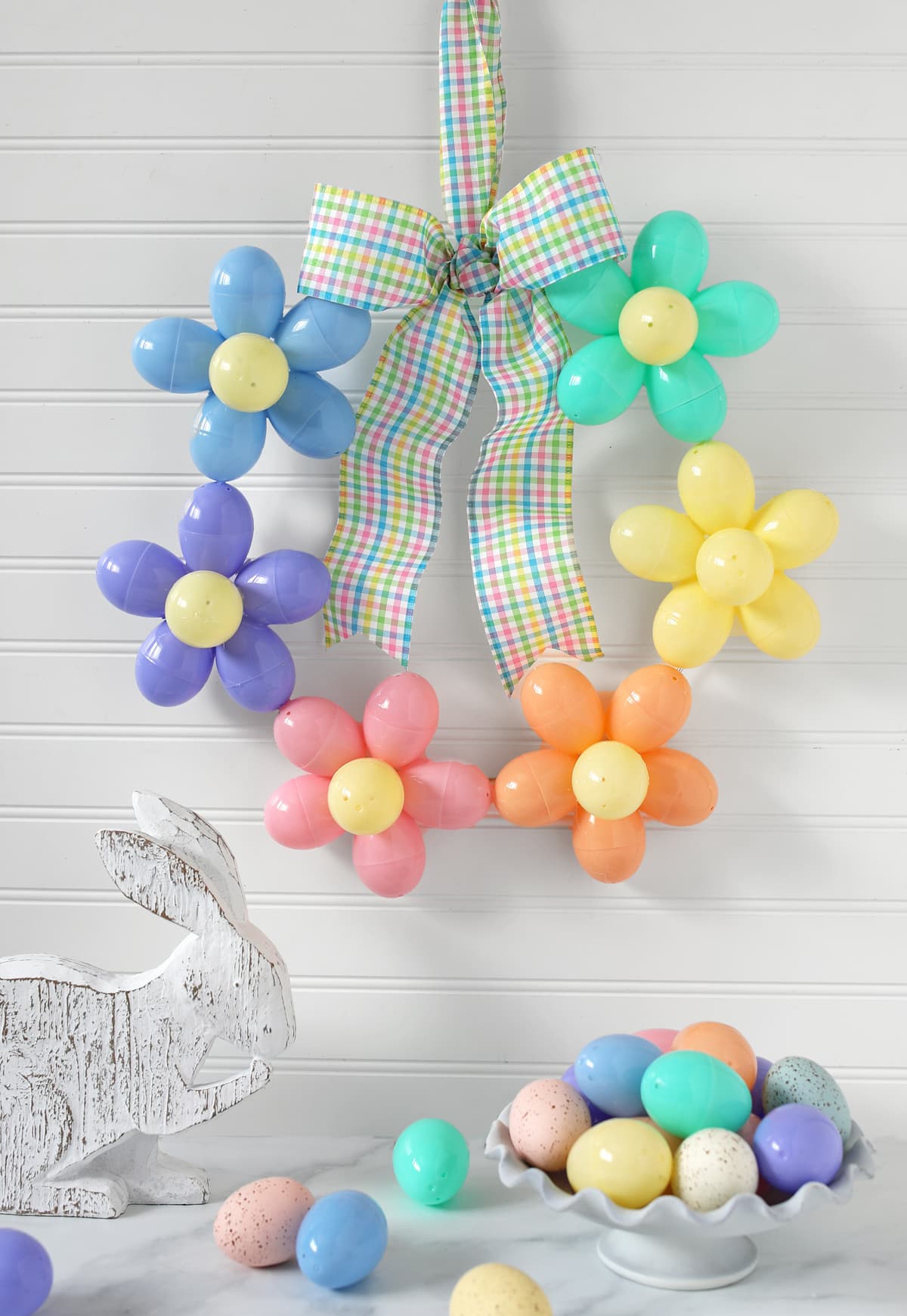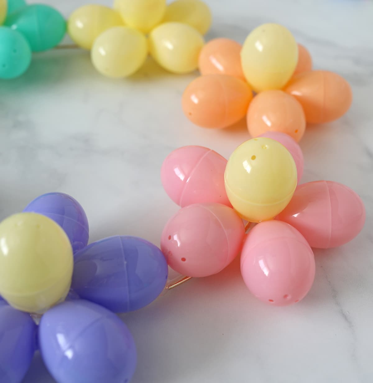 Learn how to turn plastic Easter eggs into flowers and make them into a pretty DIY spring wreath.