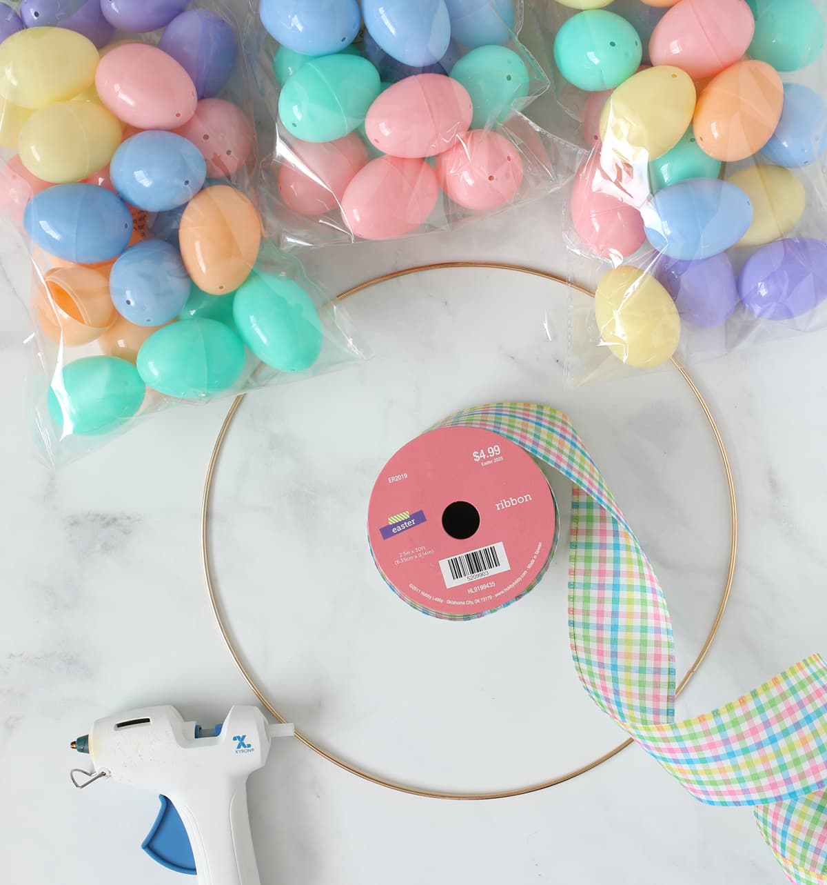 I got my eggs and ribbon at Hobby Lobby. I love this pretty pastel color combination! But you can get plastic eggs pretty much anywhere that sells holiday items and they come in so many different colorways that you can easily customize this idea to fit your style.