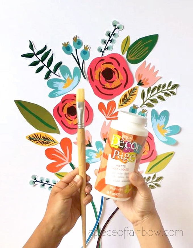 - glue or decoupage medium. I used this DecoArt 16-Ounce Decoupage Glue in Matte Finish. I love it because it’s non-toxic and acid free, which means non yellowing.