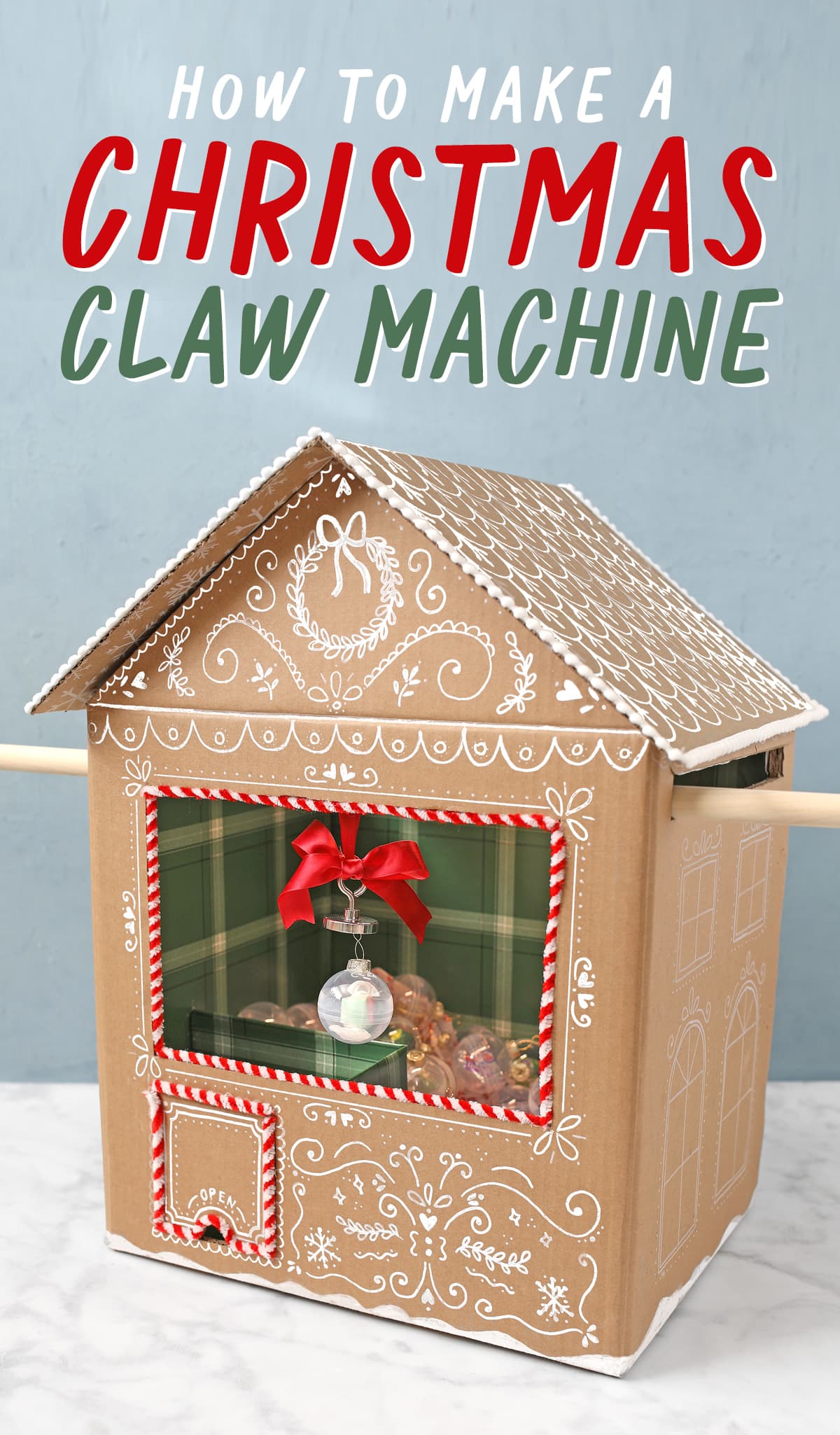 Make a working arcade claw machine that looks like a gingerbread house and is filled with prizes. Use it as a party game or as an advent calendar to count down the days to Christmas.