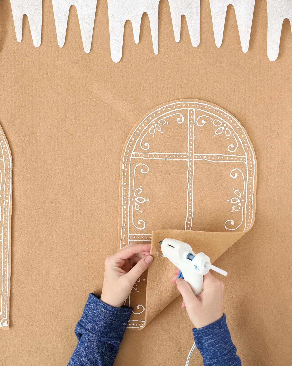 And they are the perfect size to fit right above each of the windows. I used more hot glue to attach them to the felt.