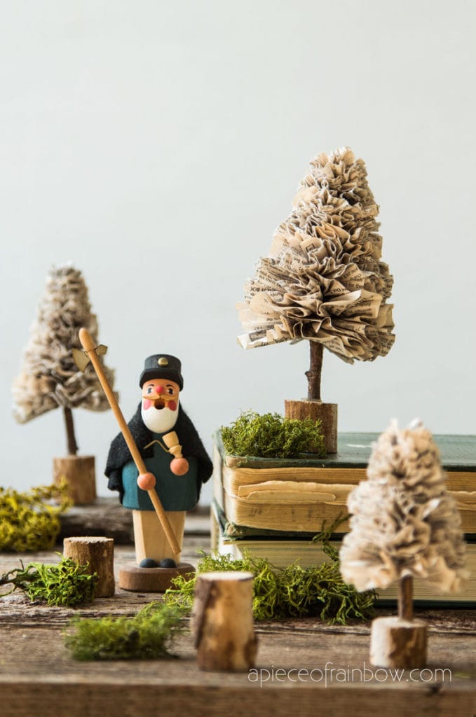 Make paper Christmas trees easily from up-cycled book pages, newspaper or magazines. Perfect Christmas decorations and easy paper crafts! They look great in so many styles from Scandinavian modern to vintage and farmhouse!