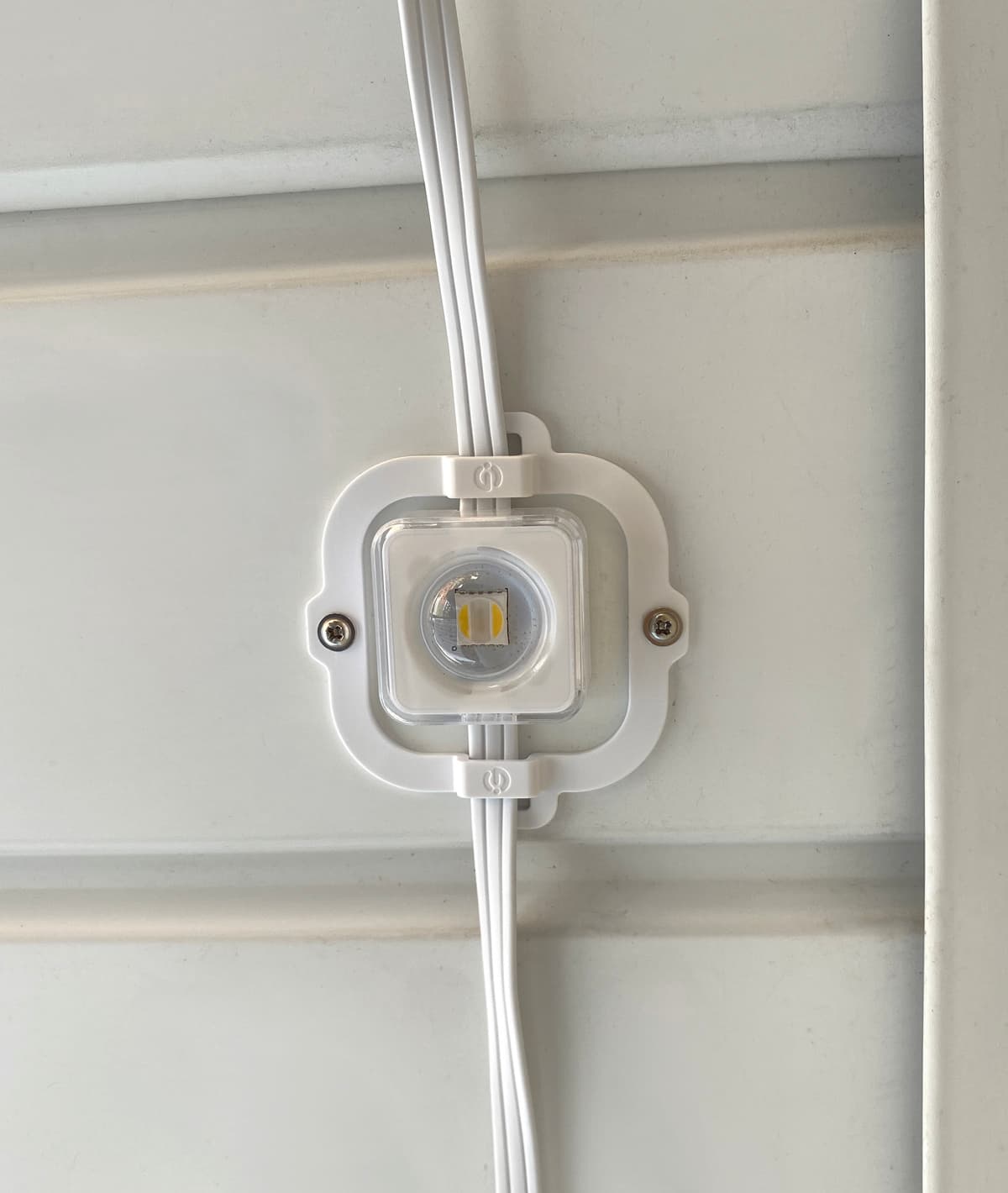 The light strands can be cut to size. If you get to the end of the area where you want lights and there are still lights left over, you can cut off the excess. Just cover the end of the wires with electrical heat shrink tubing to seal them off properly. If you haven’t done basic electrical work before, do your research and follow safe practices. Note: Cutting your lights will void your warranty on the Elite model lights, but we did it anyway. It would just look so dumb to have extra lights hanging there in a big bunch, you know? If you want to retain your warranty, I would recommend buying the Pro version of the lights instead.