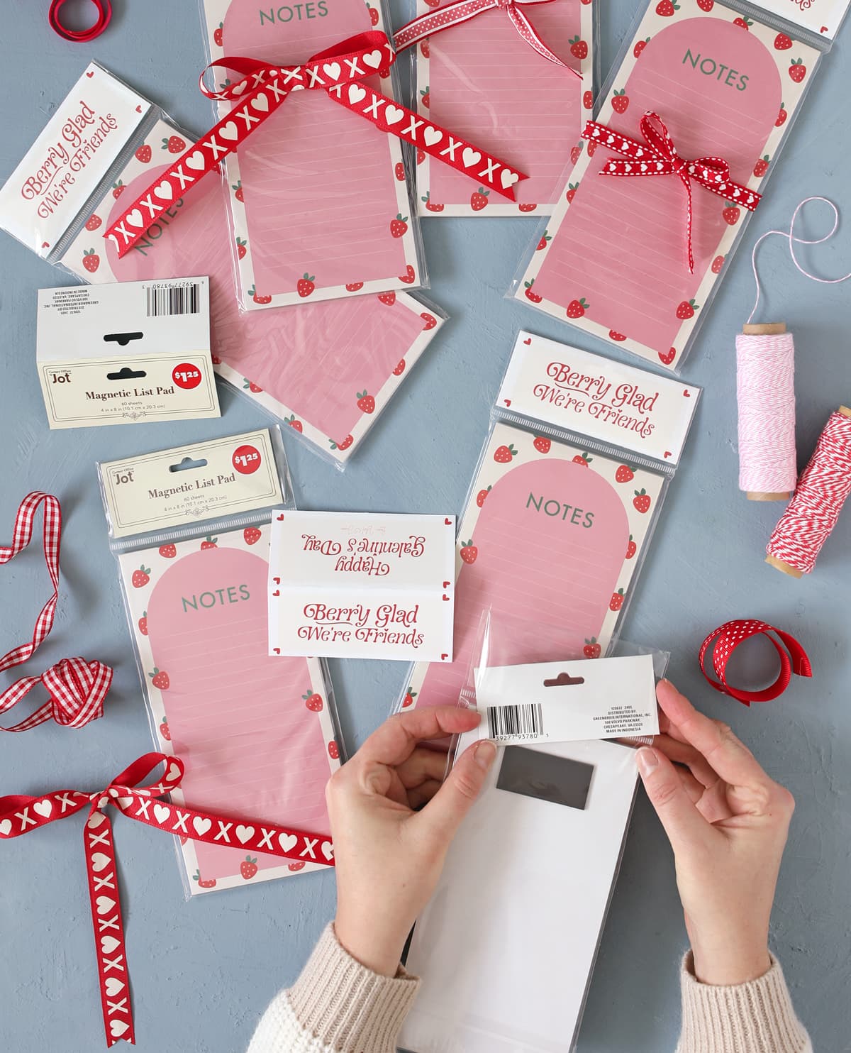 I spotted these super cute magnetic list pads at Dollar Tree a few days ago and thought they would make a great gift for my gal pals for Galentine’s Day.