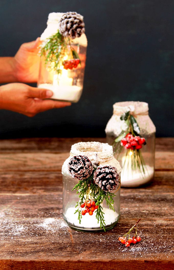 Here’s a variation of the Christmas mason jar crafts using string lights inside: DIY frosted winter and Christmas mason jar decorations, tutorial here!