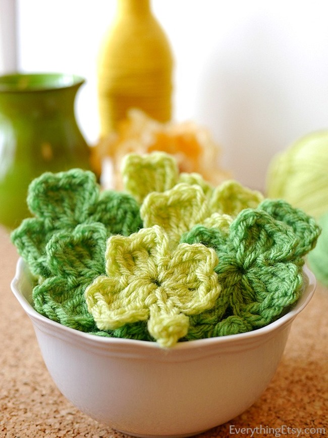 Crochet these cute little shamrocks, then use them as bowl filler or string them together for a festive garland.
