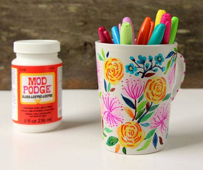 If you want to drink from the mug, keep the Sharpie art and sealer 1″to 2″ below the rim of the mug. If it is going to be for decorative uses such as a pen holder or a vase, then feel free to cover the piece with your art!